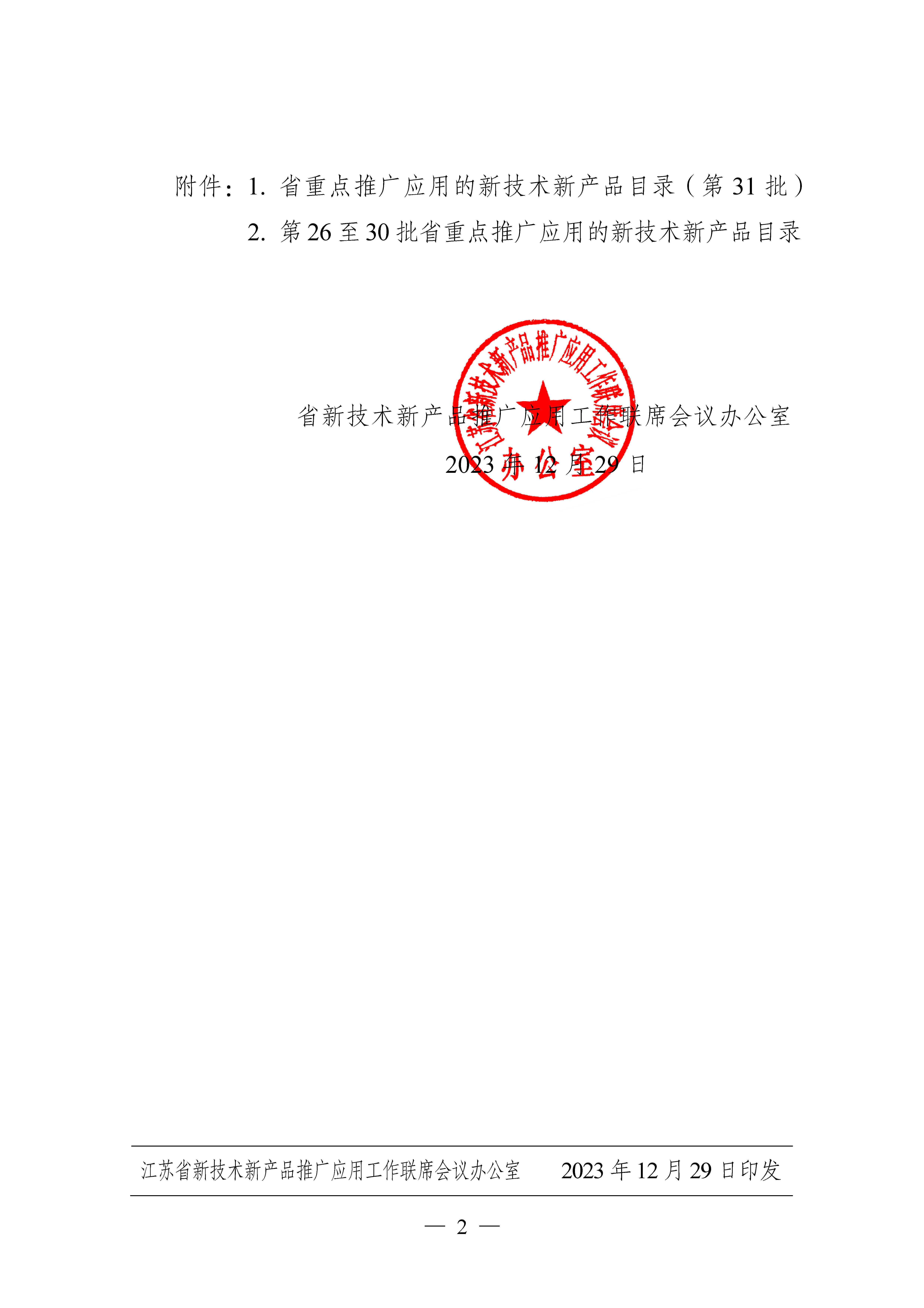 附江蘇省重點推廣應(yīng)用的新技術(shù)新產(chǎn)品目錄(第31批)入選文件及名單。