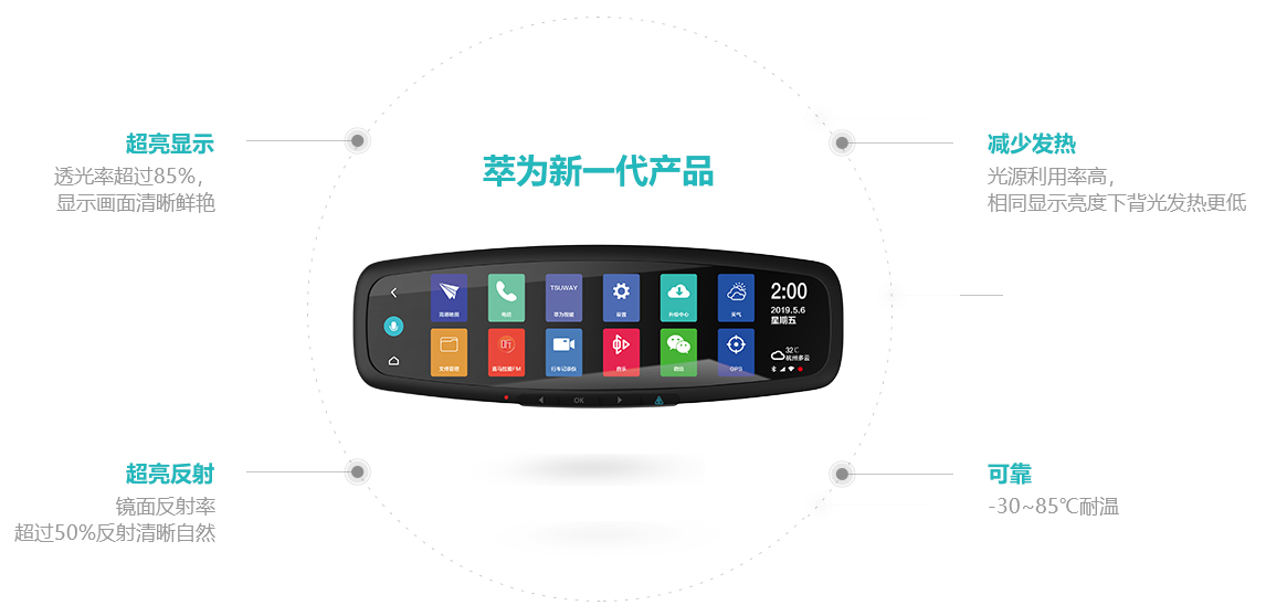 與傳統(tǒng)流媒體后視鏡相比,超透流媒體后視鏡的顯示亮度提升近1倍之多!同等顯示亮度條件下,所需的光源亮度更低,從而降低發(fā)熱,避免過熱引起的死機(jī)、黑屏現(xiàn)象, 確保行車安全。更能在增加亮度的同時(shí),反射效果不降反增!鏡面反射效果更自然、更清晰!